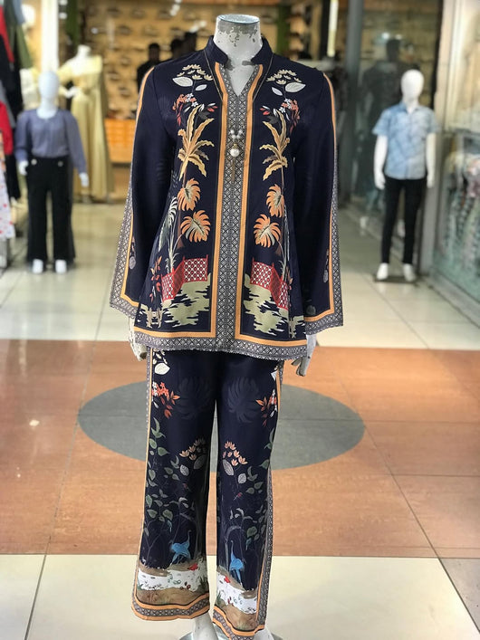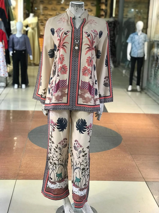Elegant printed detailing on front & trousers
